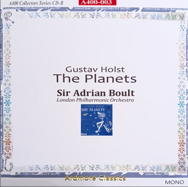 イギリス音楽界の大御所エイドリアン・ボールトの代名詞ともいうべきホルストの「惑星」。