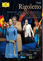 ヴェルディの名作の舞台を、16世紀の北イタリアから、60年代のラスベガスに置き換え、放蕩者の公爵と、彼に思いを寄せる娘、そしてその父親による、愛と死のドラマが繰り広げられる『リゴレット』。マントヴァ公爵(ピョートル・ベチャワ)は、女性と見れば口説かずにいられない放蕩者。一方、身体の奇形ゆえに宮廷道化師という仕事に就いているリゴレット(ジェリコ・ルチッチ)は、一人娘のジルダ(ディアナ・ダムラウ)を溺愛していた。だが、ジルダは相手の身分を知らずに公爵に想いを寄せている。そんな中、リゴレットの毒舌に恨みを募らせていた公爵の部下たちはジルダを誘拐、公爵は半ば強引に彼女をものにする。怒り狂うリゴレットは公爵暗殺を企てるが、やがて予想もしない悲劇が・・・。セクシーダンサーズに囲まれて、マイクを持って歌うベチャワなど、賛否両論となったメトの話題作をお楽しみ下さい。