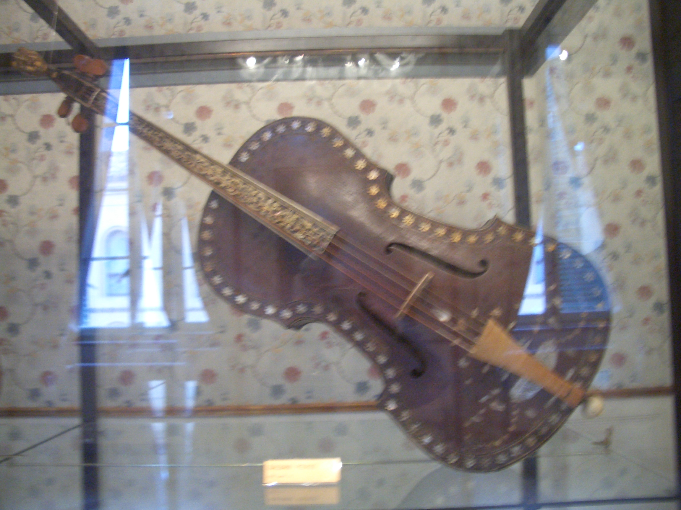 さて、その建物の2階に上がっていくと、また市の小さな博物館っぽくなっている。入場料を払って一応それも先に見学して、いよいよヴァイオリン展示室へ。ひとつ何億とかいうとんでもないお宝名器とご対面である! |