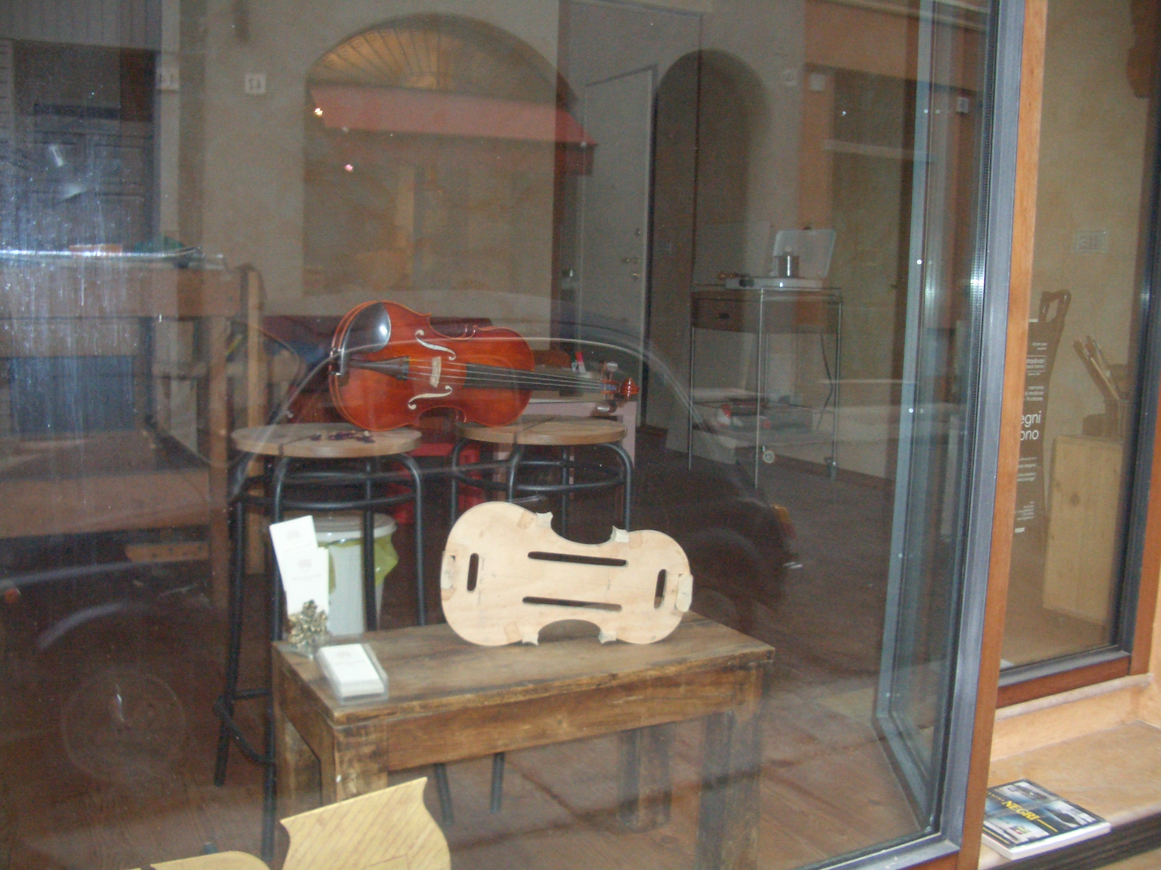 すぐ横のローマ広場をくぐり、近くの3,4件のヴァイオリン工房を通りから見学して、早足で駅に向かう。